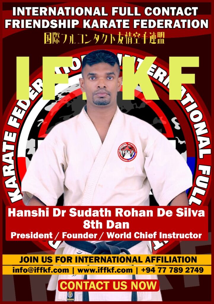 Dr. Sudath Rohan de Silva Hanshi 8th Dan, Honorary Founder President and World Chief Instructor of the IFFKF International Karate Organization, has been awarded the honorary black belt 8th Dan by the International Shin Karate Organization of Iran. Dr. Sudath Rohan de Silva Hanshi 8th Dan has become a renowned instructor in Sri Lanka and internationally and his karate expertise is a special honor.